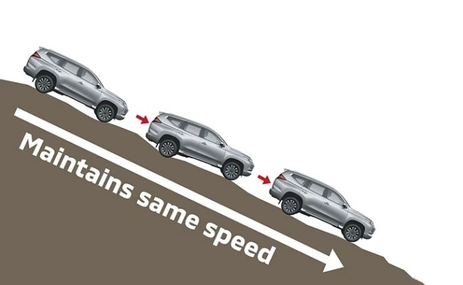 Mode ini akan mengaktifkan rem secara otomatis yang membantu Anda mengendalikan kecepatan saat jalanan menurun. HDC dapat diaktivasi pada rentang kecepatan 2-20 km/jam.