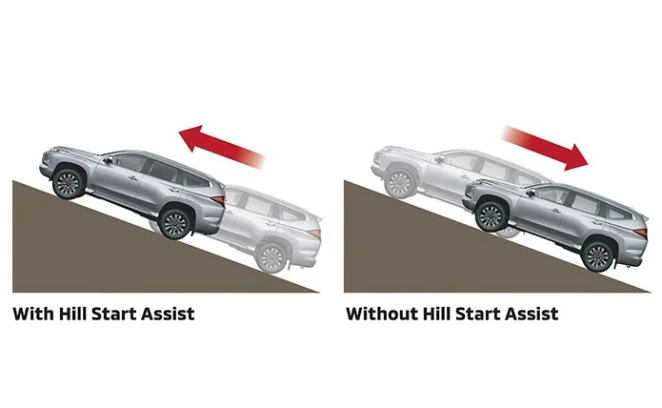 Saat menanjak, HSA akan mencegah mobil mundur dengan menahan rem hingga dua detik setelah pedal rem dilepas.